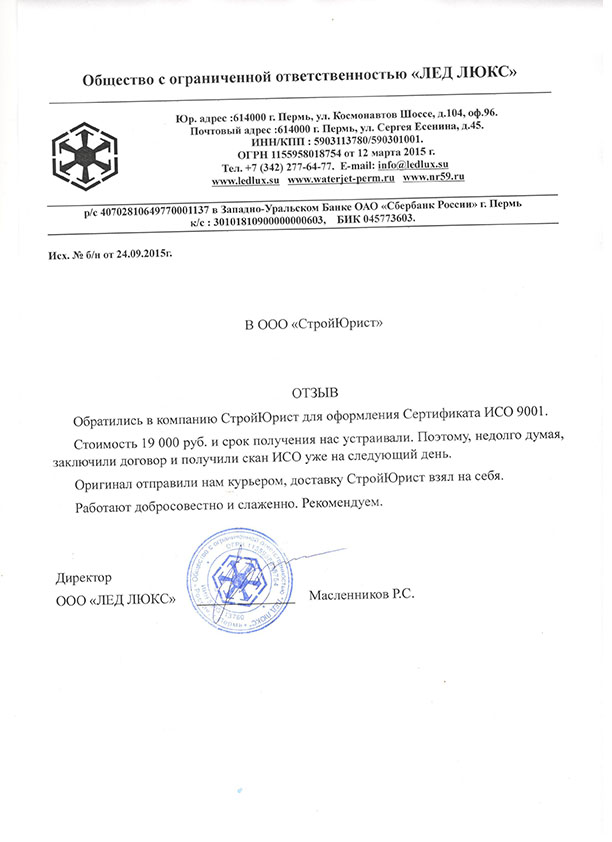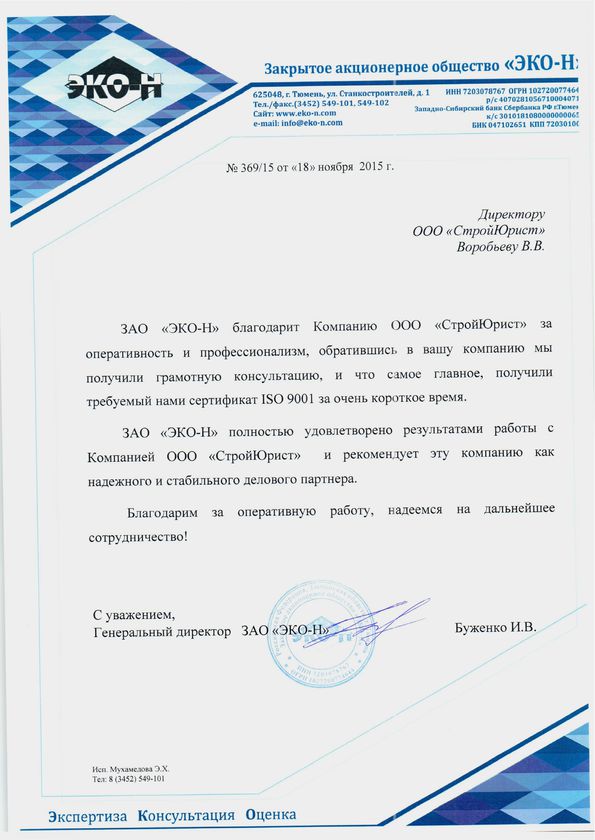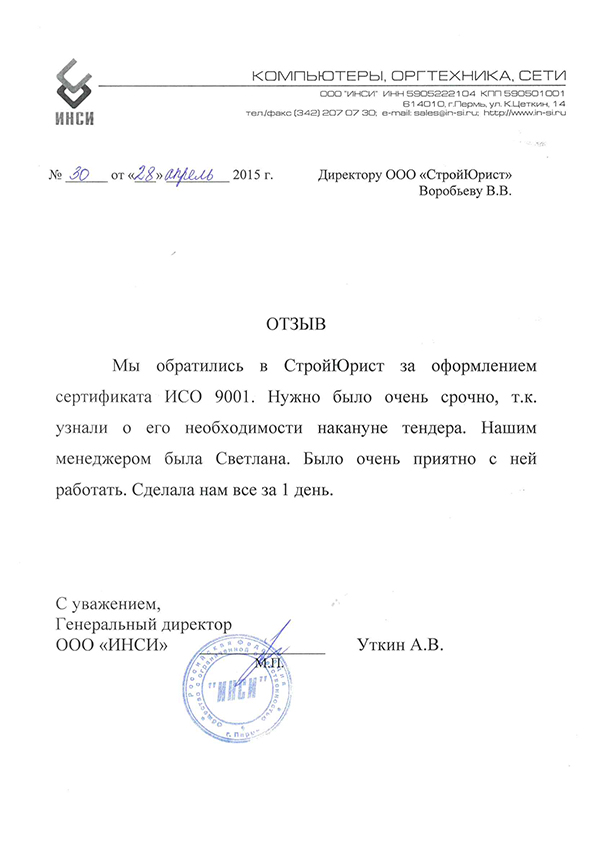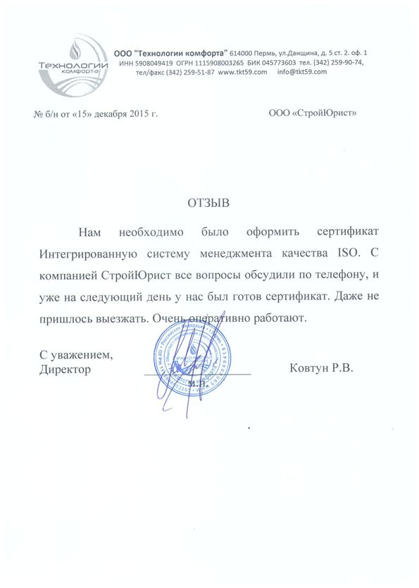 Отзывы клиентов "СтройЮрист" по ISO в Воронеже