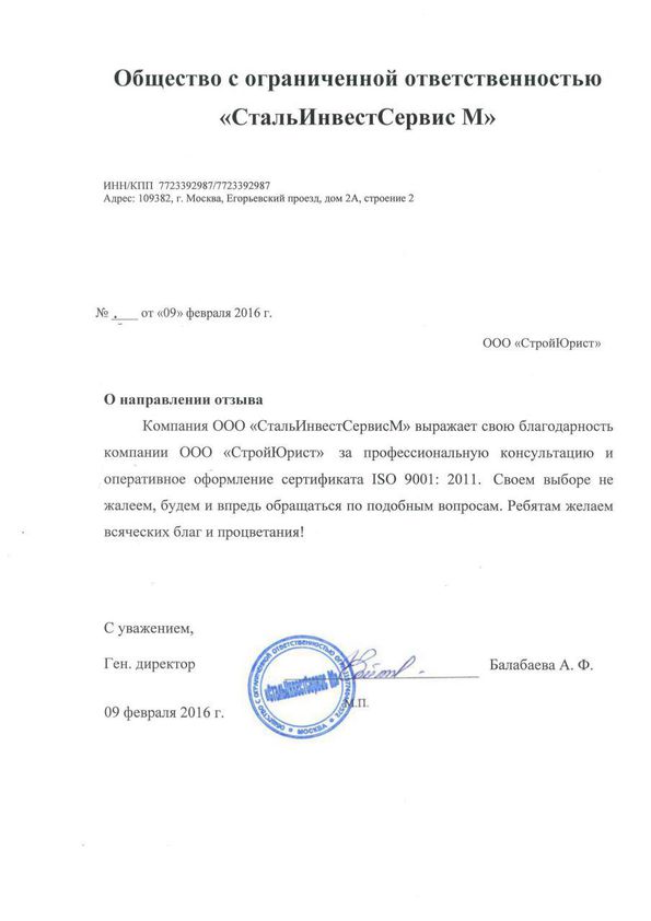 Отзывы клиентов "СтройЮрист" по ISO в Воронеже