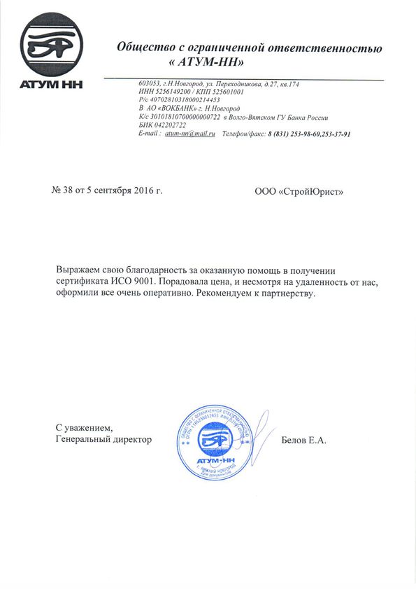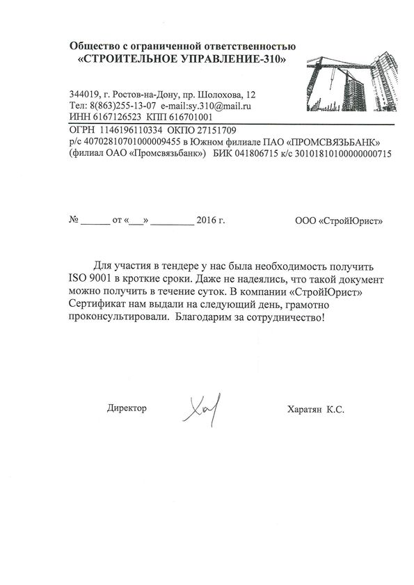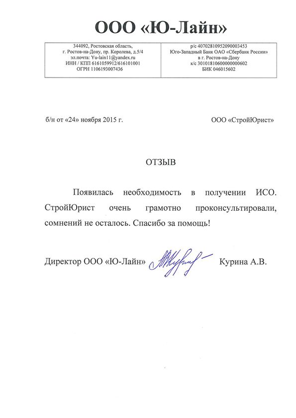 Отзывы клиентов "СтройЮрист" по ISO в Воронеже