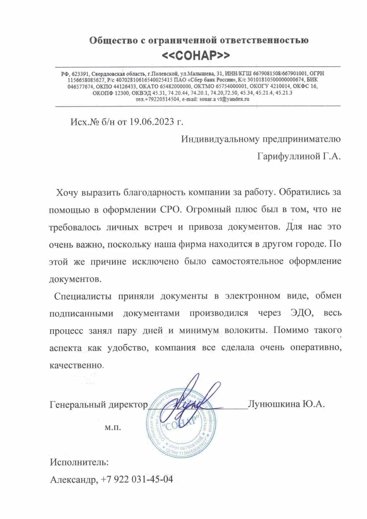 - Номер СРО.